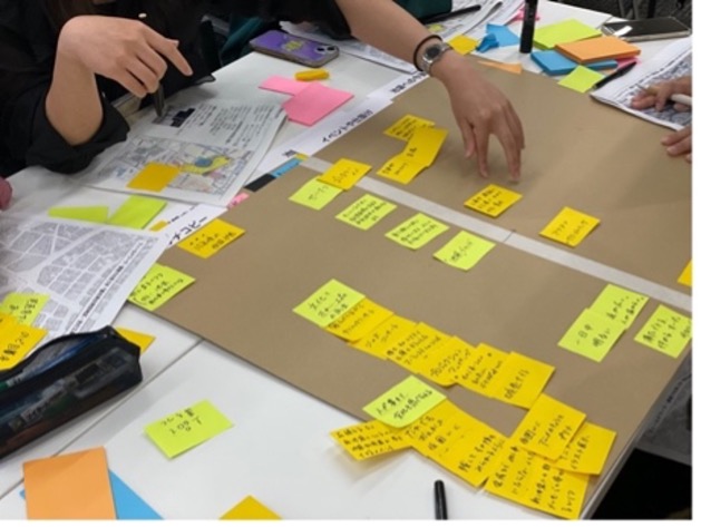 はじめに、本再開発の推進を担う事業協力者・三菱地所より池袋駅西口地区市街地再開発準備組合が進めるまちづくりコンセプトについてレクチャーを受け、その後、履修生は学部・学年混成のグループに分かれ、「15年後の池袋に期待する将来像や価値観」と「15年後の池袋に向けたイベントや仕掛けの提案」をテーマに、ワークショップおよびフィールドワークを実施しました。